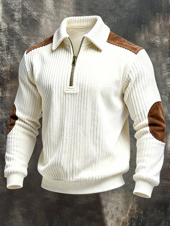Men'S Vintage-Style Color-Block Long-Sleeved Sweatshirt With Suede Panels.