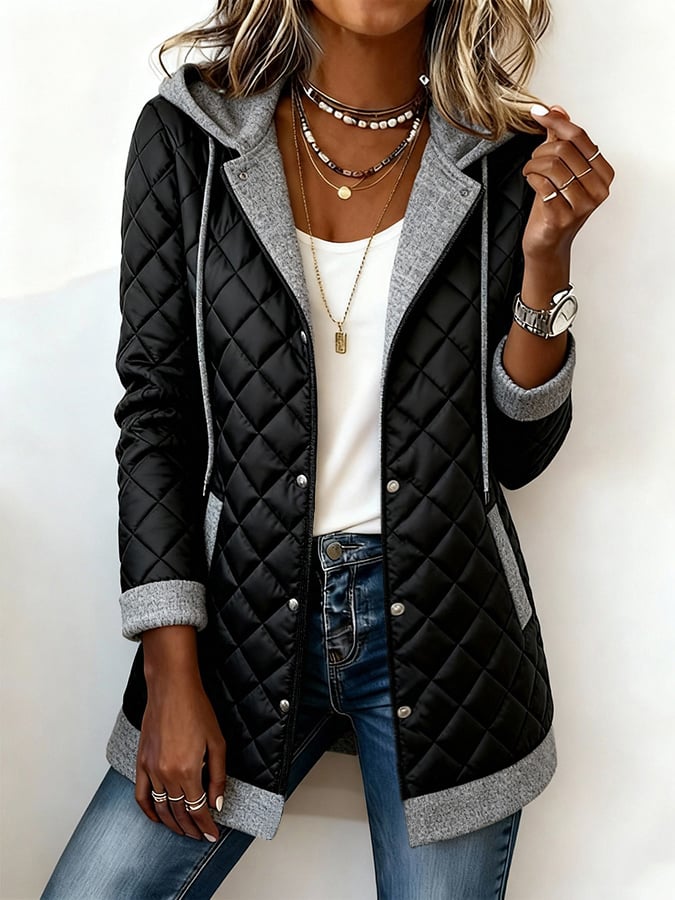 Women's Casual Hooded Color Block Jacket